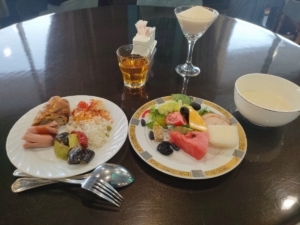 ホテルウズベキスタンの朝食はシンプル、タコさんウィンナある。