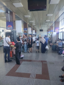 この建築様式はソ連式なのかわからない。タシュケント空港の入国もこんな感じ