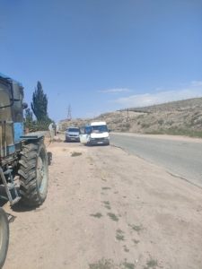 朝からめんどいなーーーと思いつつ、道路を眺める。バスは来ない。みんなКаракол止まり。