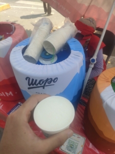 ワンカップウォッカとワンカップコニャック各50som*2を購入。