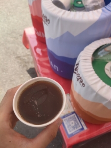 ドリンク補給。コーラ味の麦ジュース